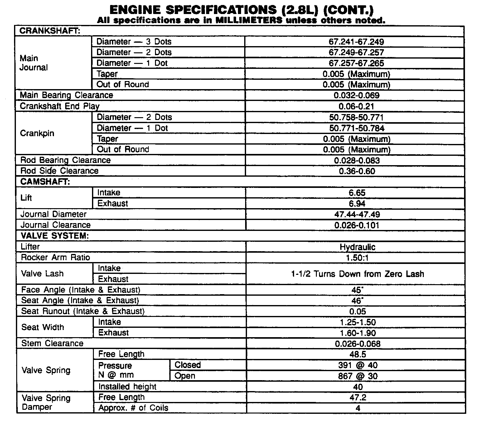 Continued Engine Specifications:
