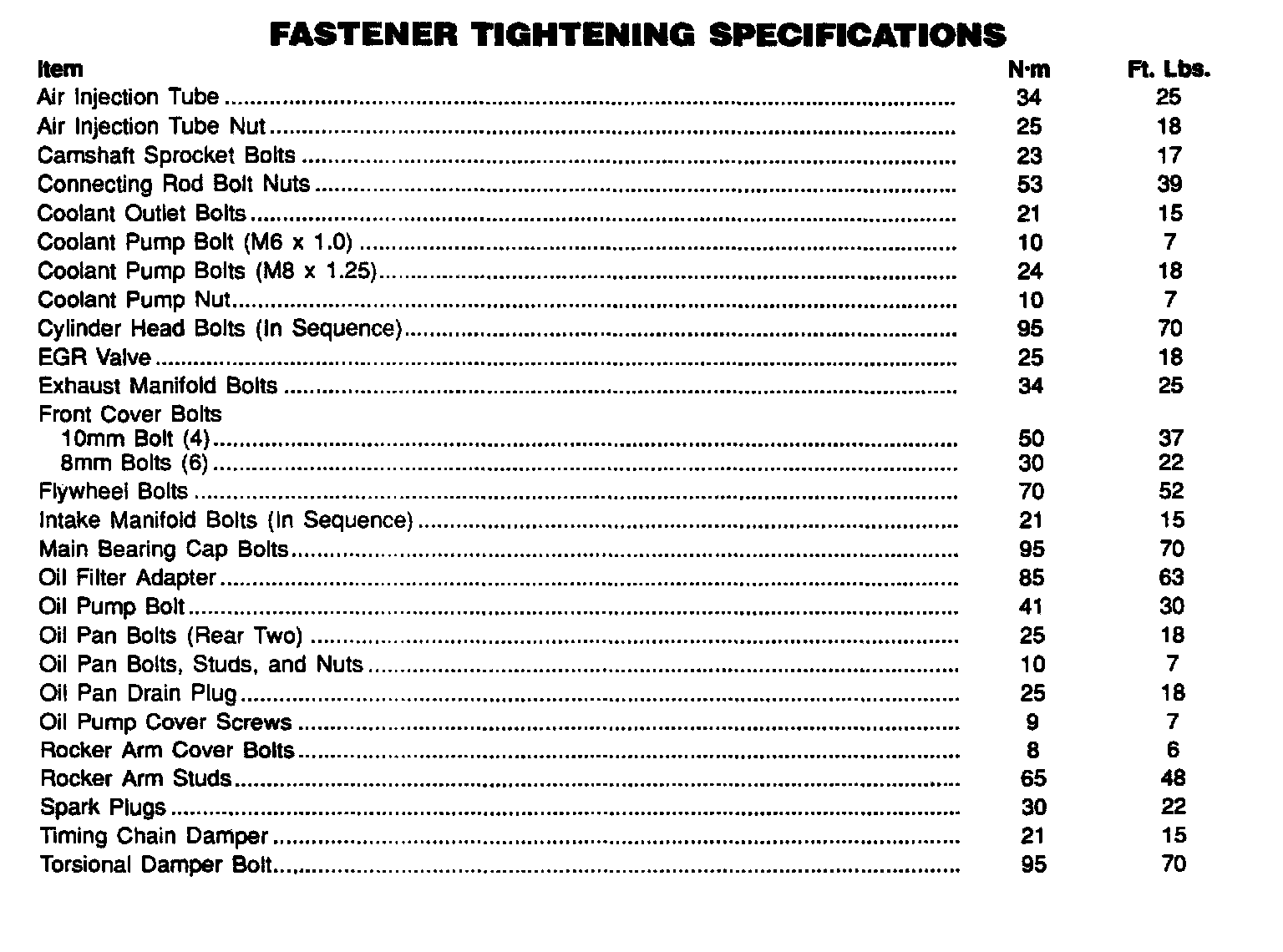 Torque Specifications: