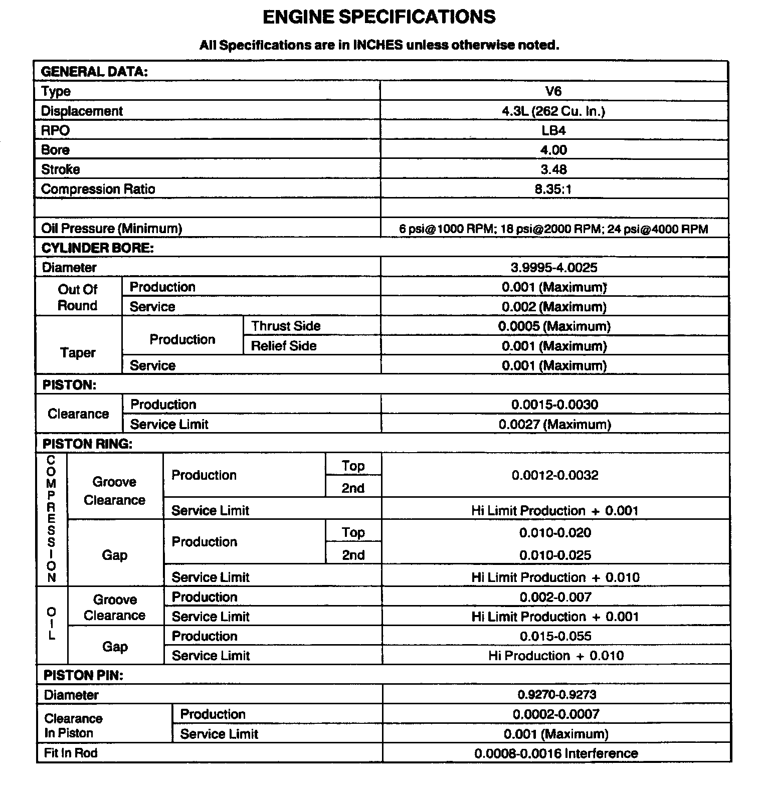 Engine Specifications:
