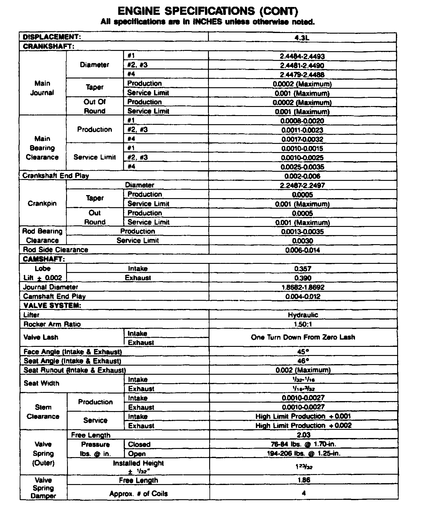 Continued Engine Specifications: