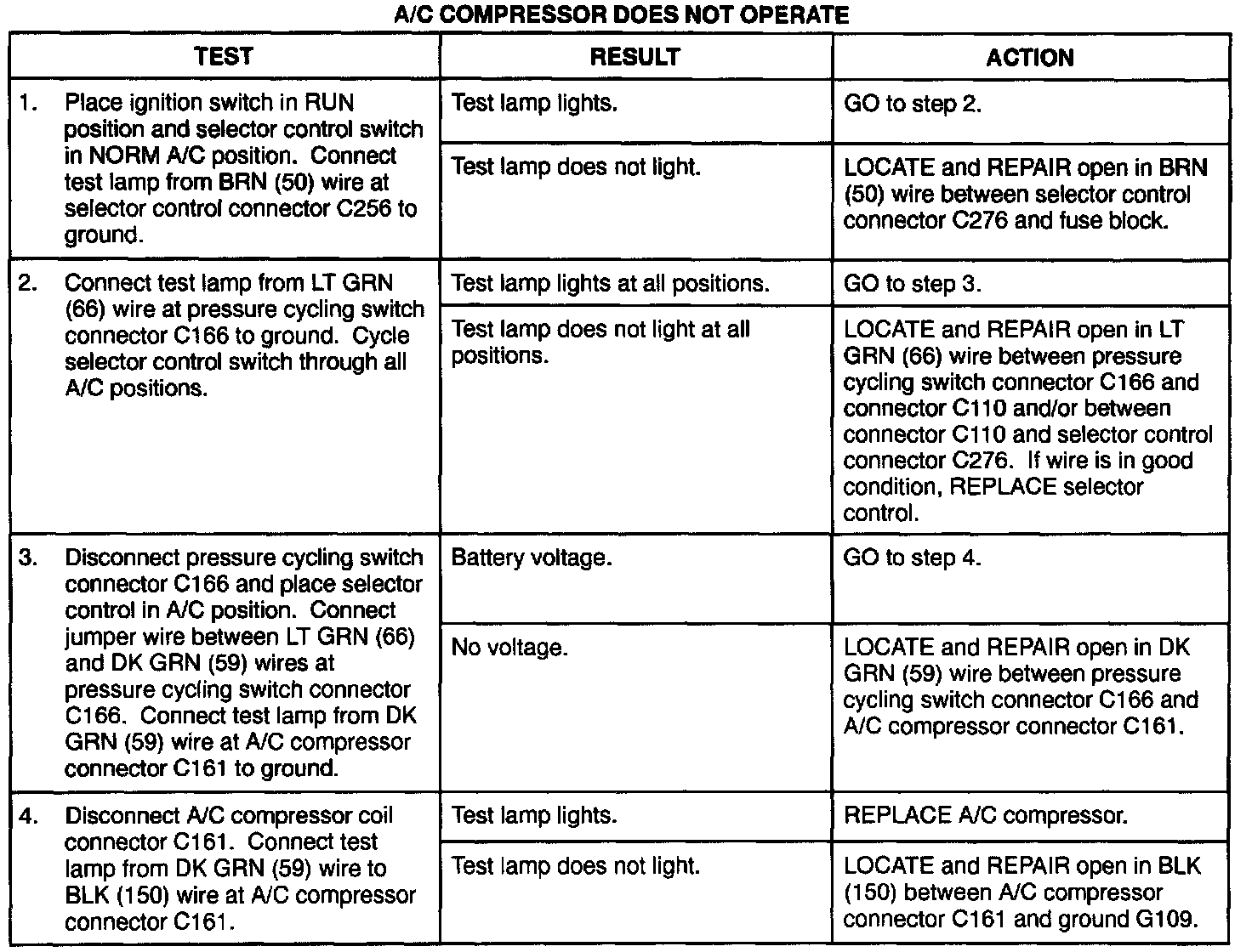 A/C Compressor Does Not Operate:
