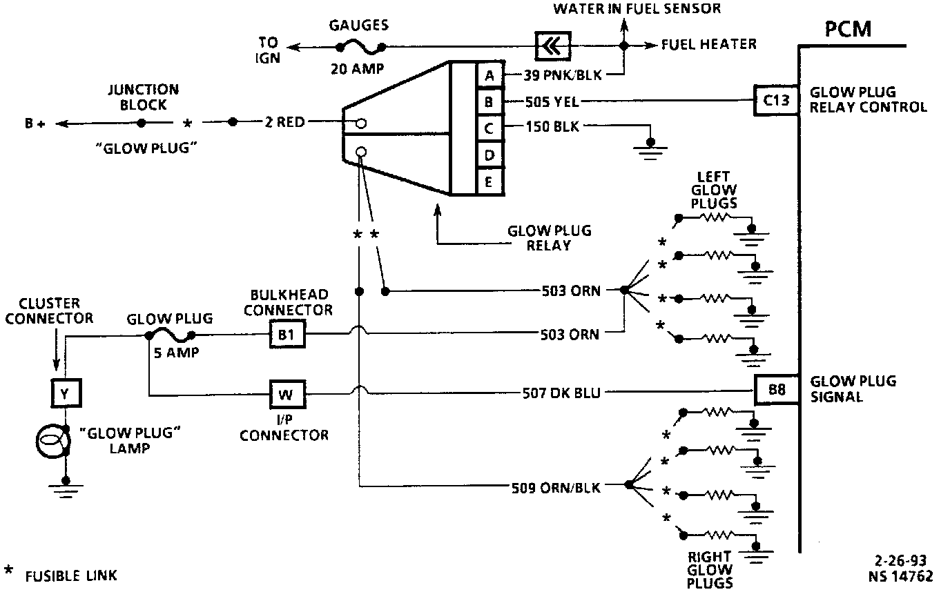 2. If the relay contacts are shorted together, there will be 12 volts supplied to the glow plugs at all times. Since these are 6 volt glow plugs, they will be damaged by the constant high voltage.