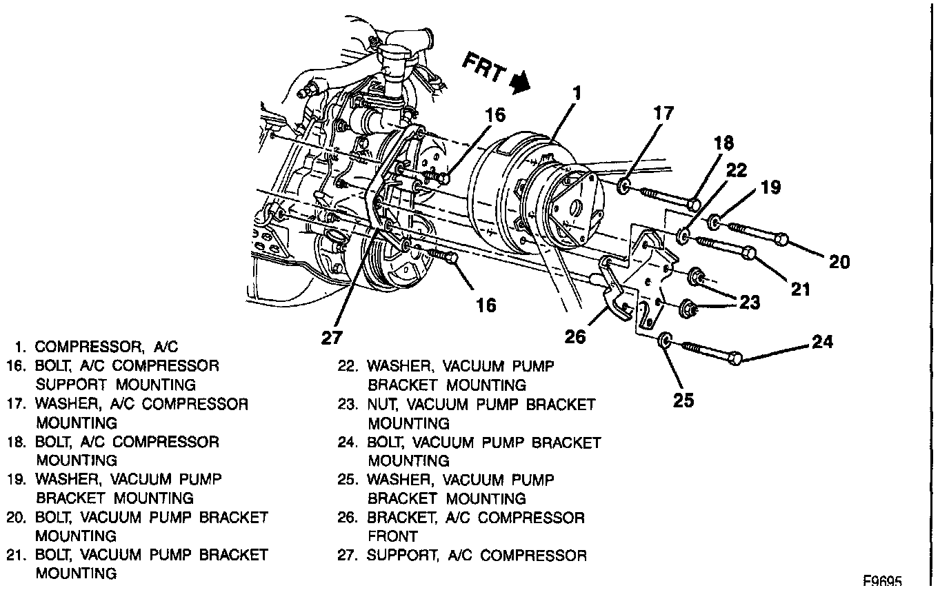 9. Refrigerant hose assembly to compressor.