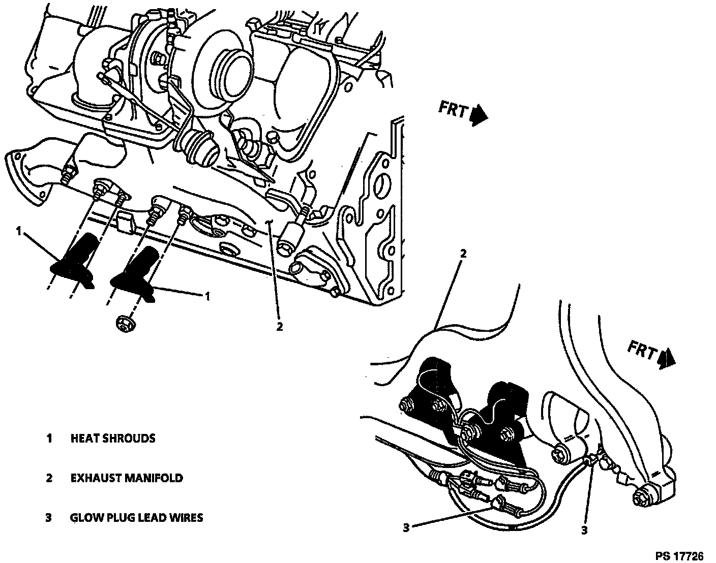 ^ Slide the shrouds back far enough to allow access for unplugging the wires at the #4 and #6 glow plugs.