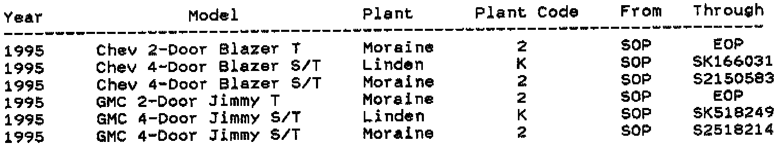 Involved are CERTAIN 1995 S/T Chevrolet Blazers and GMC Jimmys with cargo area retractable shades built within the VIN breakpoints as shown.