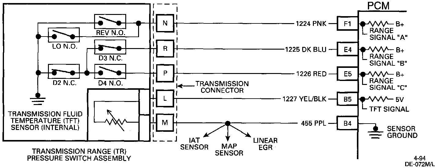 Transmission Range (TR) Pressure Switch Chart: