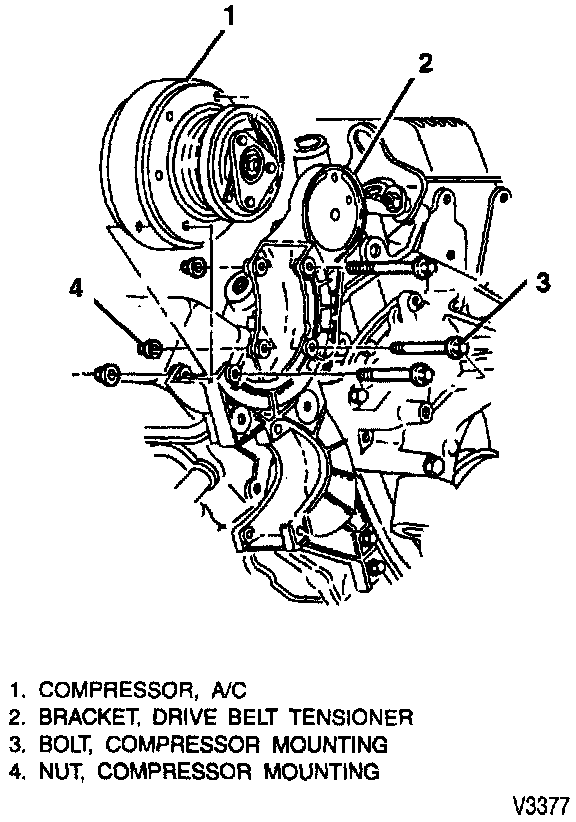 1. Compressor (1) to bracket (2).