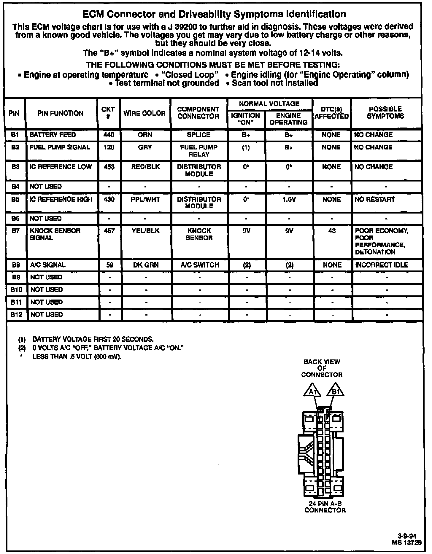 ECM Pin-Out Chart: