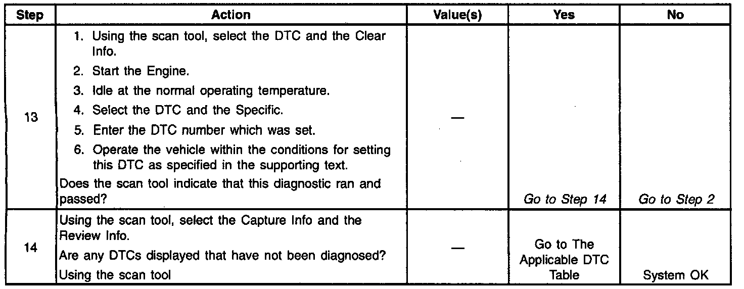 The numbers listed below refer to the step numbers on the diagnostic table.