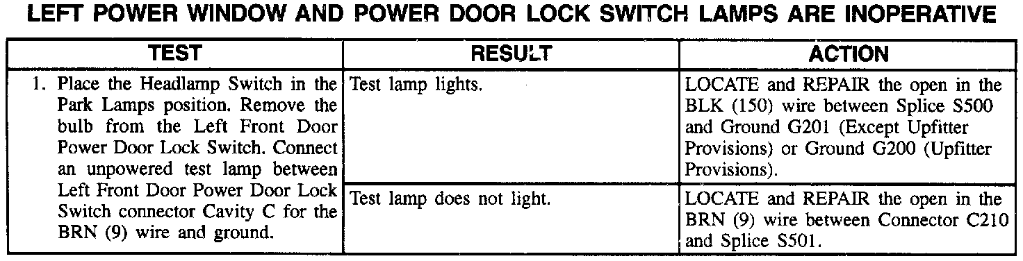 Left Power Window And Power Door Lock Switch Lamps Are Inoperative: