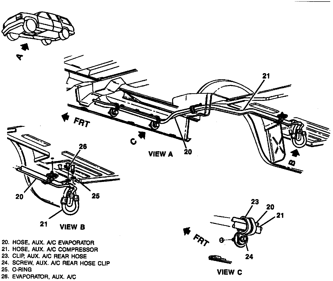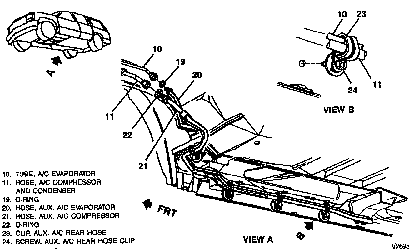 10. Auxiliary compressor hose from auxiliary evaporator.