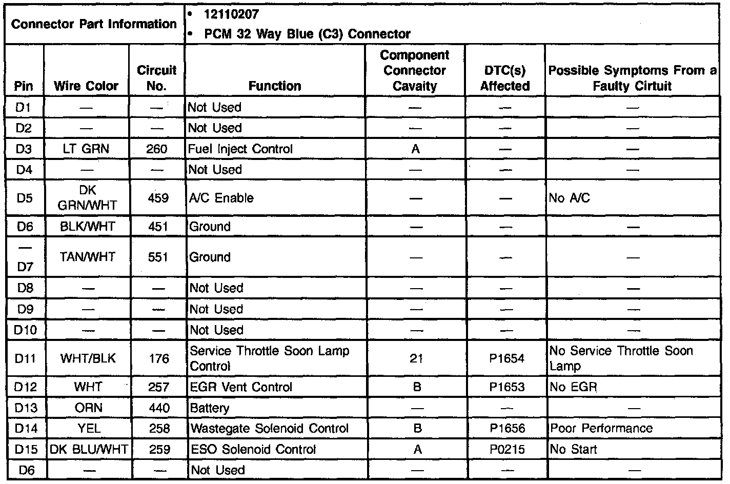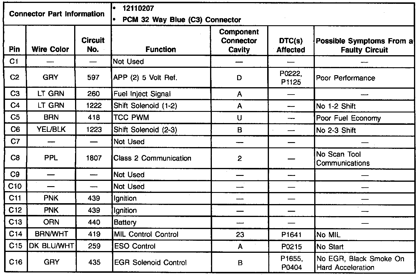 Pins C1-C16: