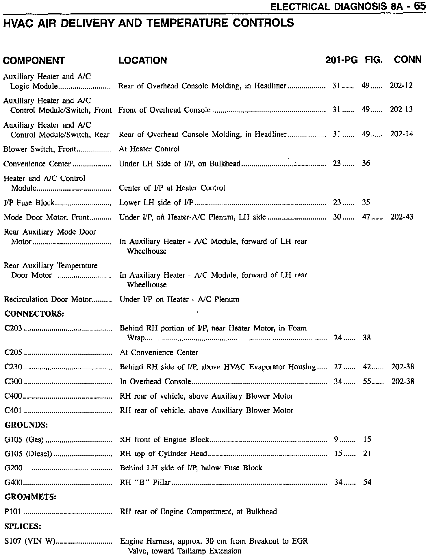 This bulletin revises the position of the Auxiliary Heater and A/C Logic Module in the 1996 Service Manual on pages 8A-63-6, 8A-65-5, 8A-200-0 8A-201-37 and 8A-201-31.