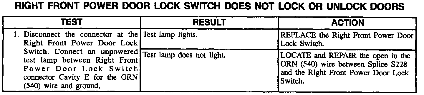 Right Front Power Door Lock Switch Does Not Lock Or Unlock Doors: