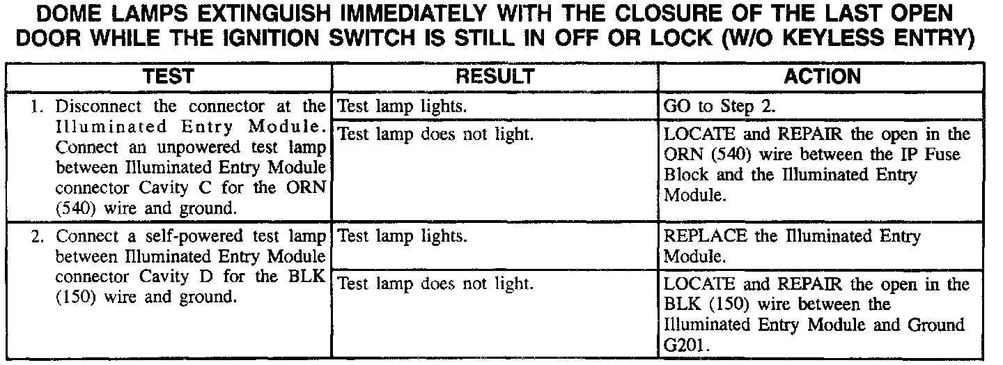 Dome Lamps Extinguish Immediately With The Closure Of The Last Open Door While The Ignition Switch Is Still In OFF Or Lock (W/O Keyless Entry):