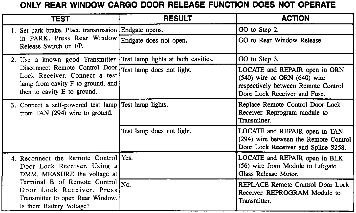 Only Rear Window Cargo Door Release Function Does Not Operate: