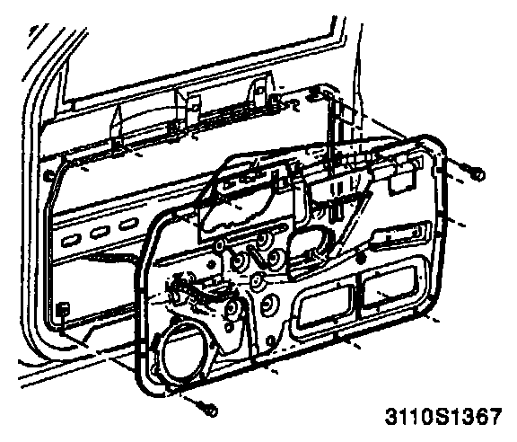 ^ Use a flat blade tool to carefully pry door accessory mounting panel from door trim panel.