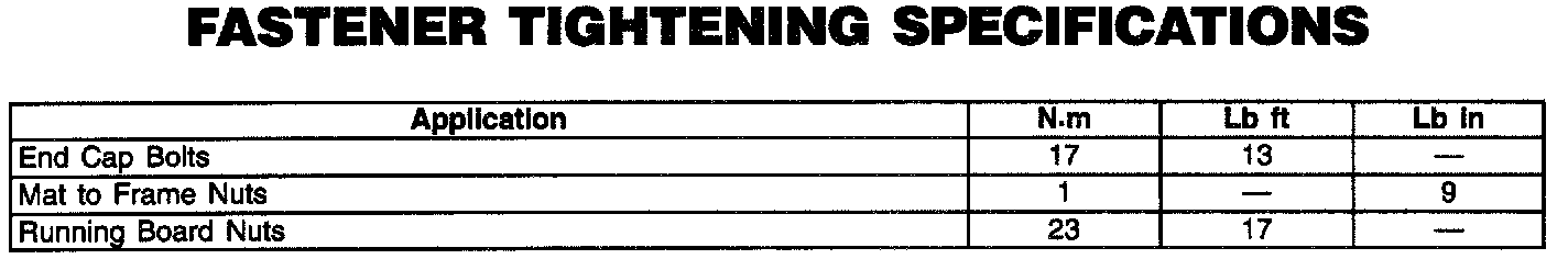 Fastener Tightening Specifications: