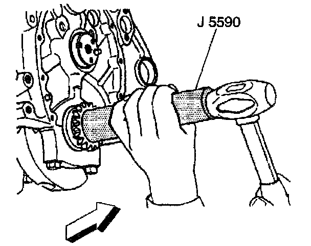 Use the J 5590 and a hammer in order to install the crankshaft sprocket.