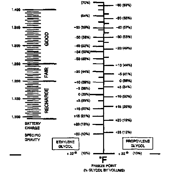 ^ The coolant protection reading is at the point where the dividing line between light and dark crosses the scale. Antifreeze protection is the scale on the right.