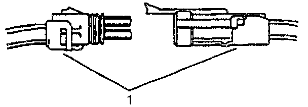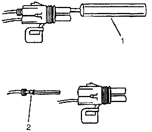 - Insert the Weather Pack(R) terminal removal tool into the front (mating end) of the connector cavity until it rests on the cavity shoulder (1).