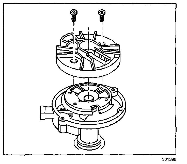 1. Remove the two screws that hold the distributor cap to the housing.