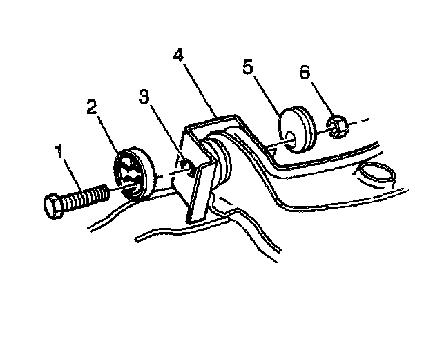 3. Install the cams (6) and the nuts (4). Install the cams with the radius toward the frame brackets.