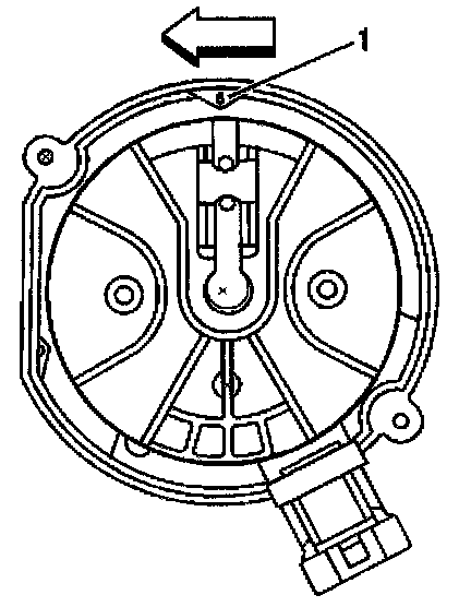 6. Observe the alignment of the rotor in relation to the distributor base (1).