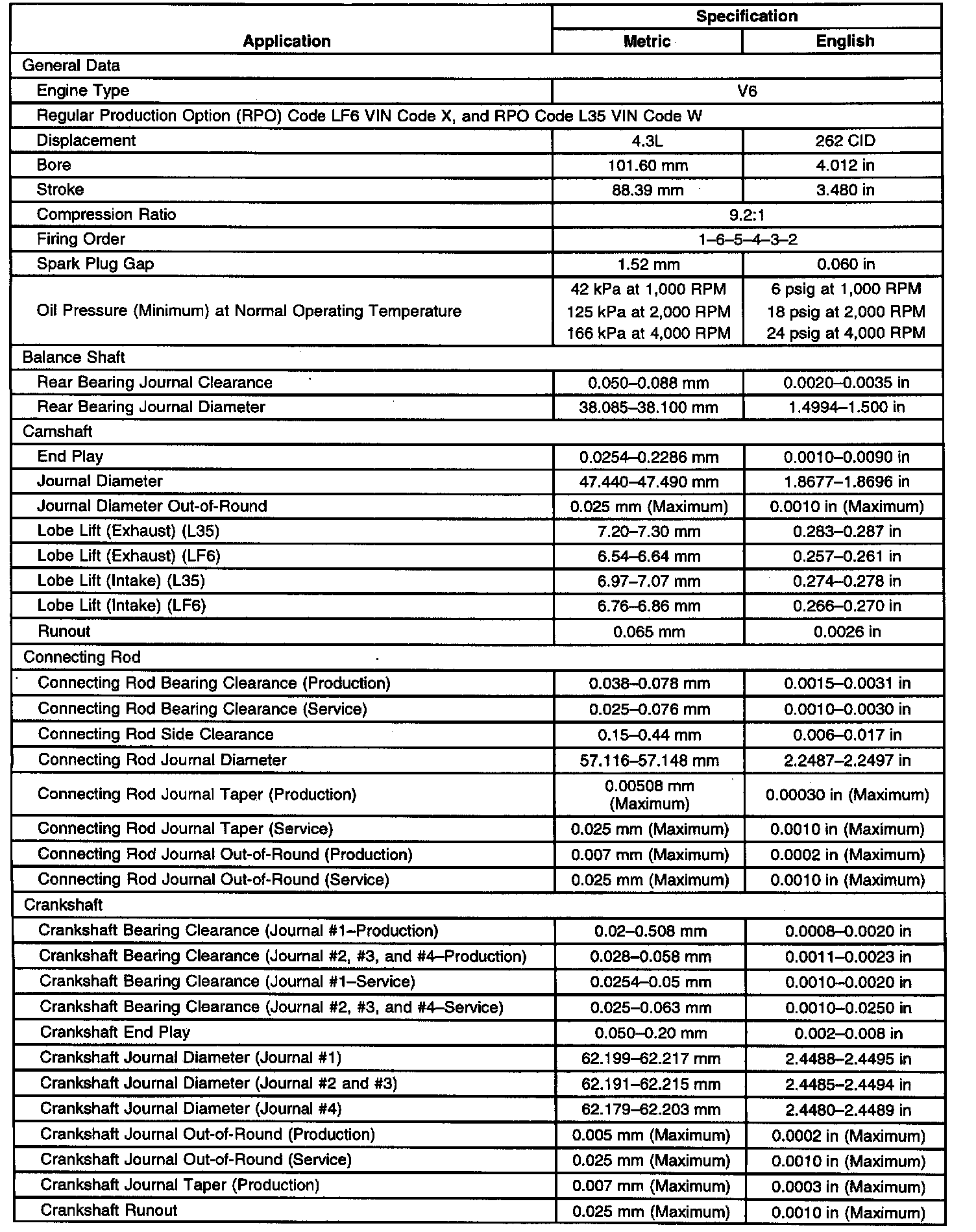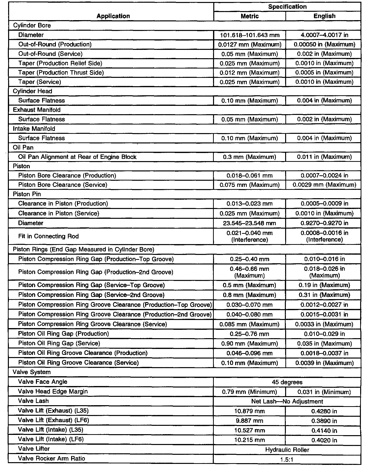 Engine Mechanical Specifications