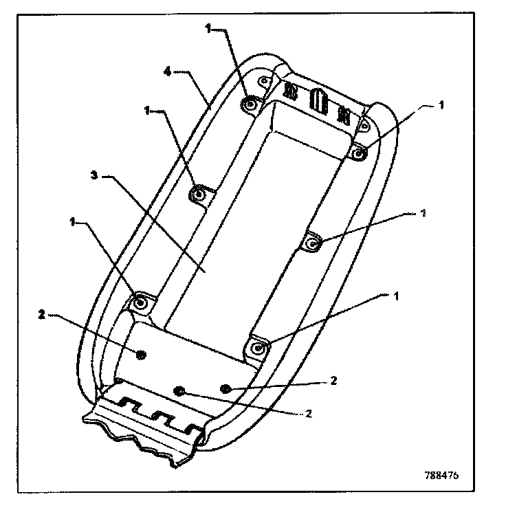 4. Install the three phillips head screws (2) and then the six torx head screws (1). Tighten all screws to 1.5 Nm (13 lb in).