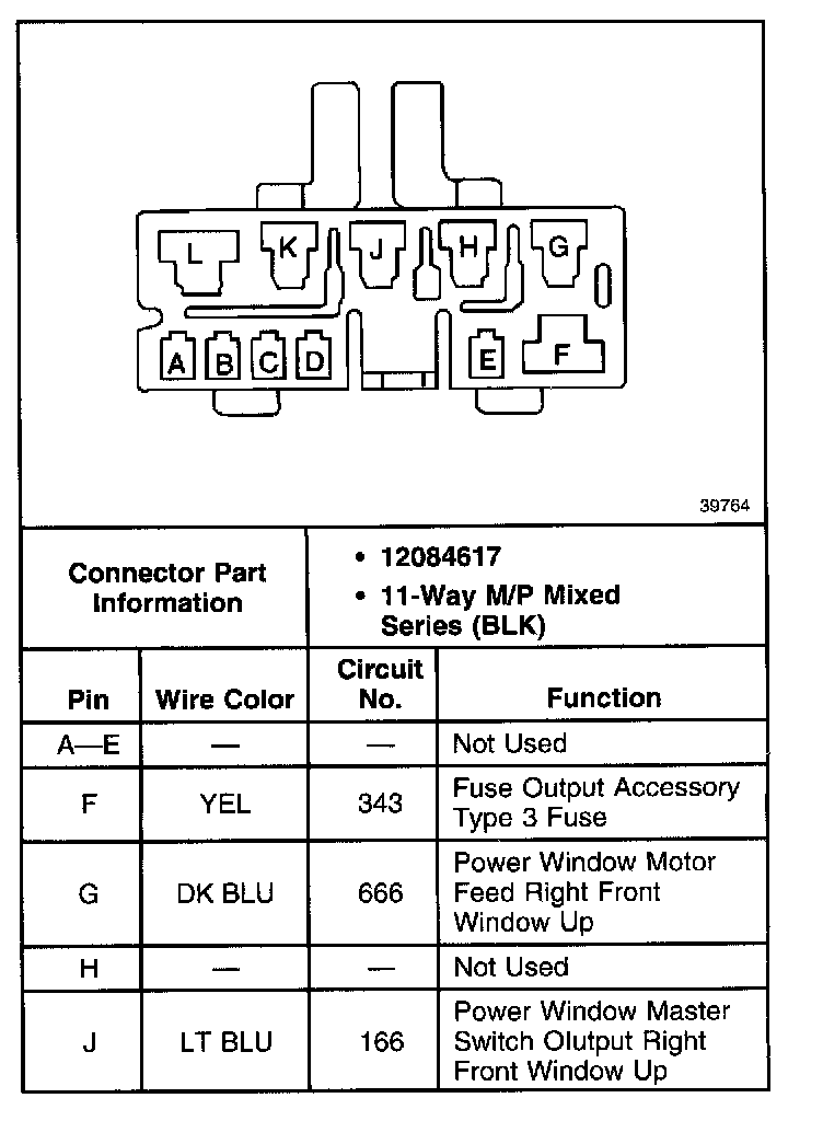 Power Window Switch (C2) RH Front Connector (Part 2 Of 2):