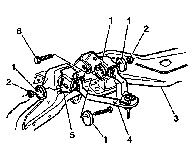 The caster and camber adjustments are made by rotating the offset cam bolt and the cam in the slotted frame bracket in order to reposition the control arm.
