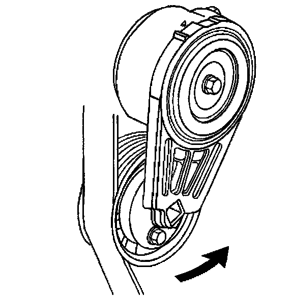 4. Install a 3/8 inch drive wrench on the drive belt tensioner arm and rotate the arm counterclockwise.