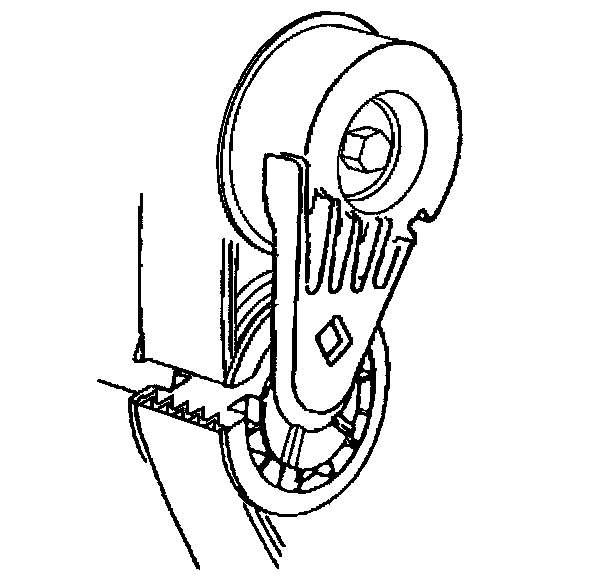 3. Install a 3/8 inch drive wrench on the drive belt tensioner arm and rotate the arm counterclockwise.