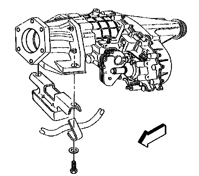 11. Remove two bolts and washers securing the transfer case adapter to the mount.