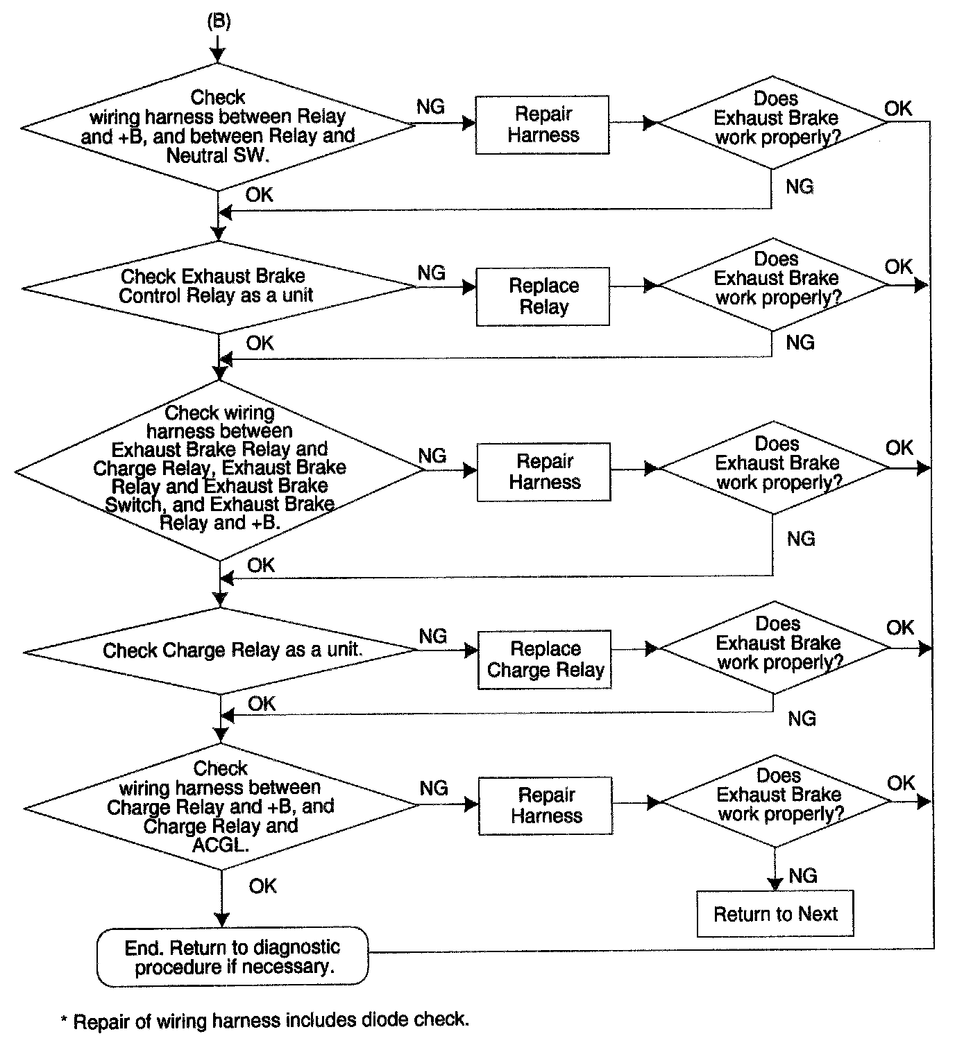 Actuate the exhaust brake with the engine idling and make sure that you hear the valve strike on the stopper.