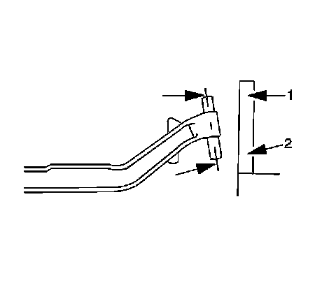 King pin inclination is the amount that the top of the king pin is inclined toward the center of the vehicle. Measure king pin inclination by subtracting the top measurement (1) from the bottom measurement (2). The king pin inclination is designed into the axle end. King pins are inclined in order to assist the front wheel return to the center after a turn is made.