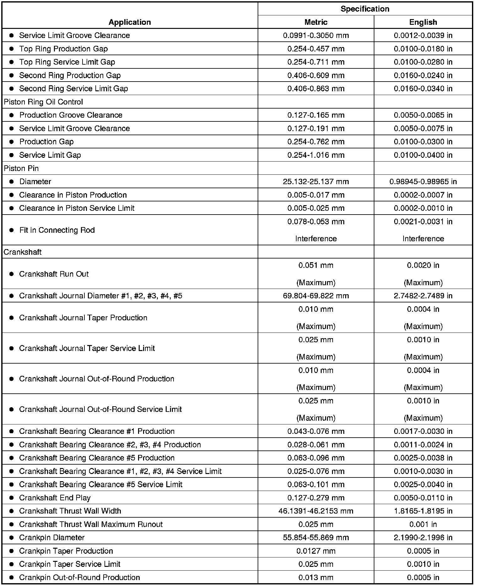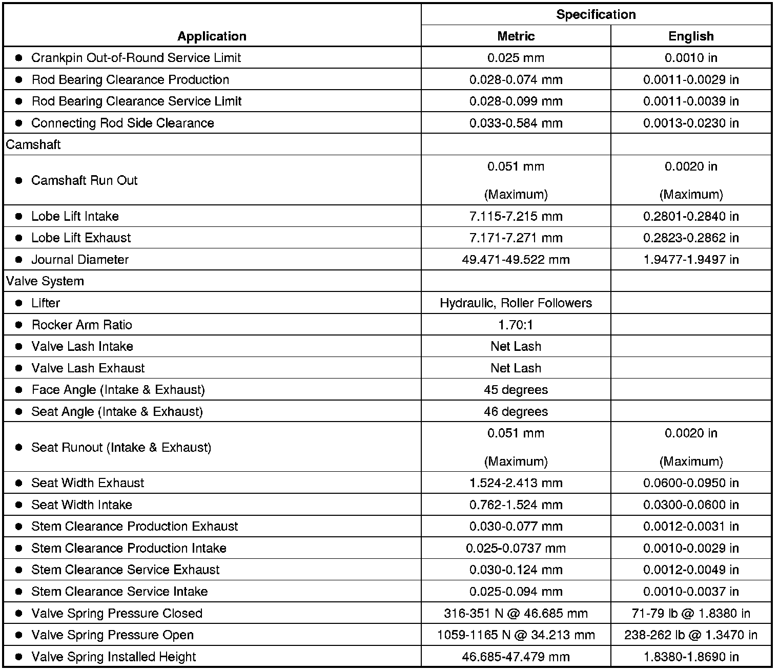 Engine Mechanical Specifications (LP4 (VIN D))