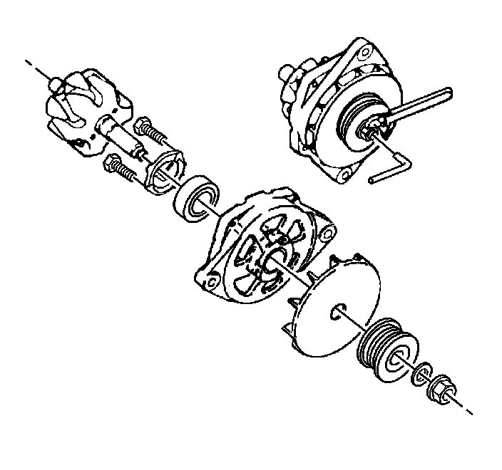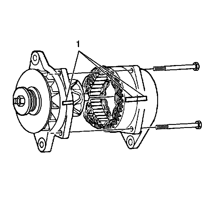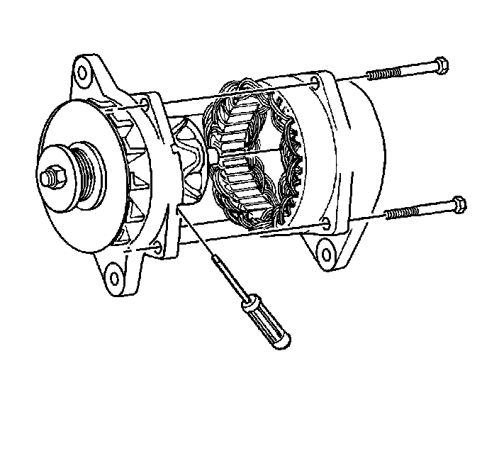 5. Use a screwdriver at the stator slots, if necessary, in order to remove the slip ring end frame from the following components: