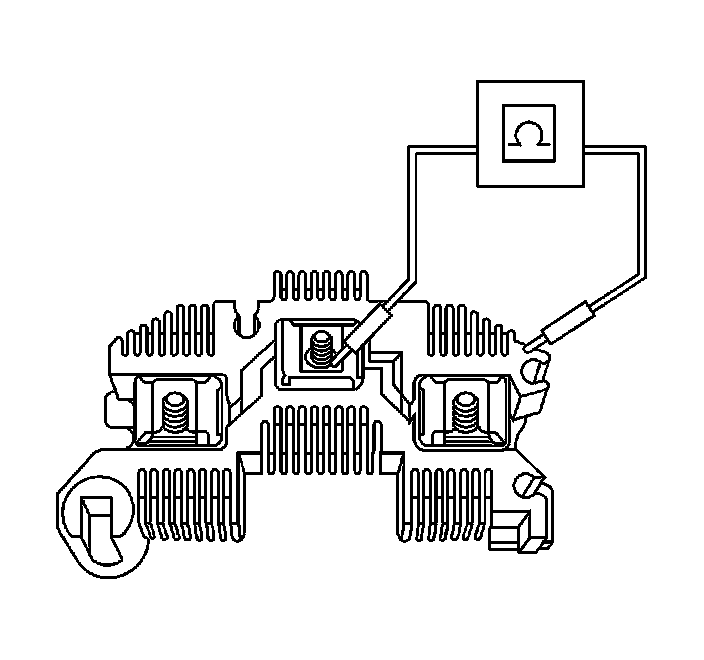 2. Use the positive lead of the ohmmeter in order to test for continuity between each of the three rectifier bridge straps.
