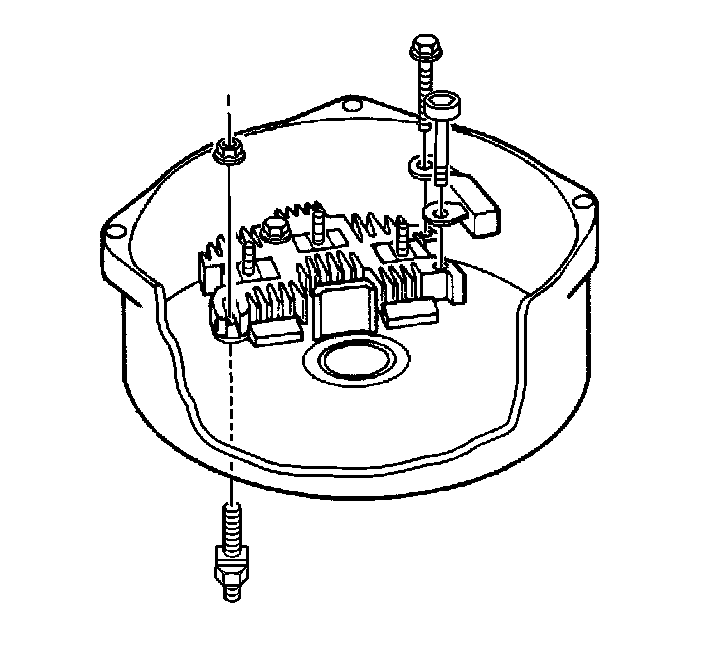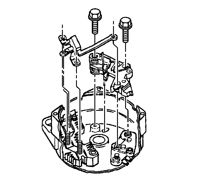 22. Use the following components in order to secure the regulator, the brush holder assembly and the diode trio to the end frame: