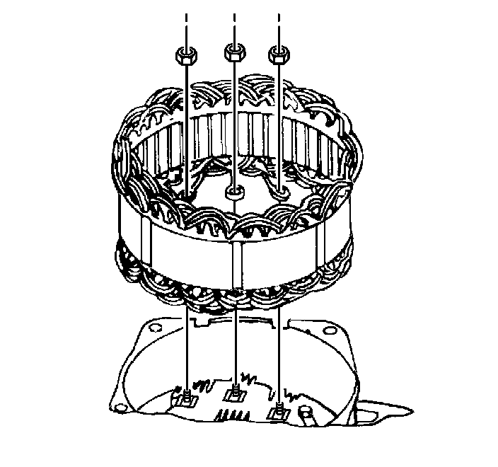 6. Remove the three rectifier bridge nuts in order to disconnect the stator.