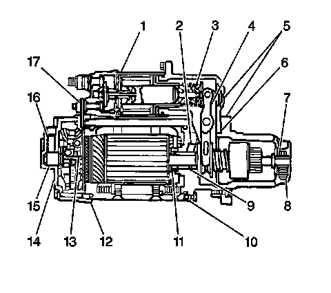 When the engine starts, the pinion overrunning clutch protects the armature from excessive speed. Releasing the ignition or engine control switch opens the solenoid main contacts and causes the plunger's return spring to disengage the pinion. In order to prevent damage to the starter, release the key immediately after the engine starts.