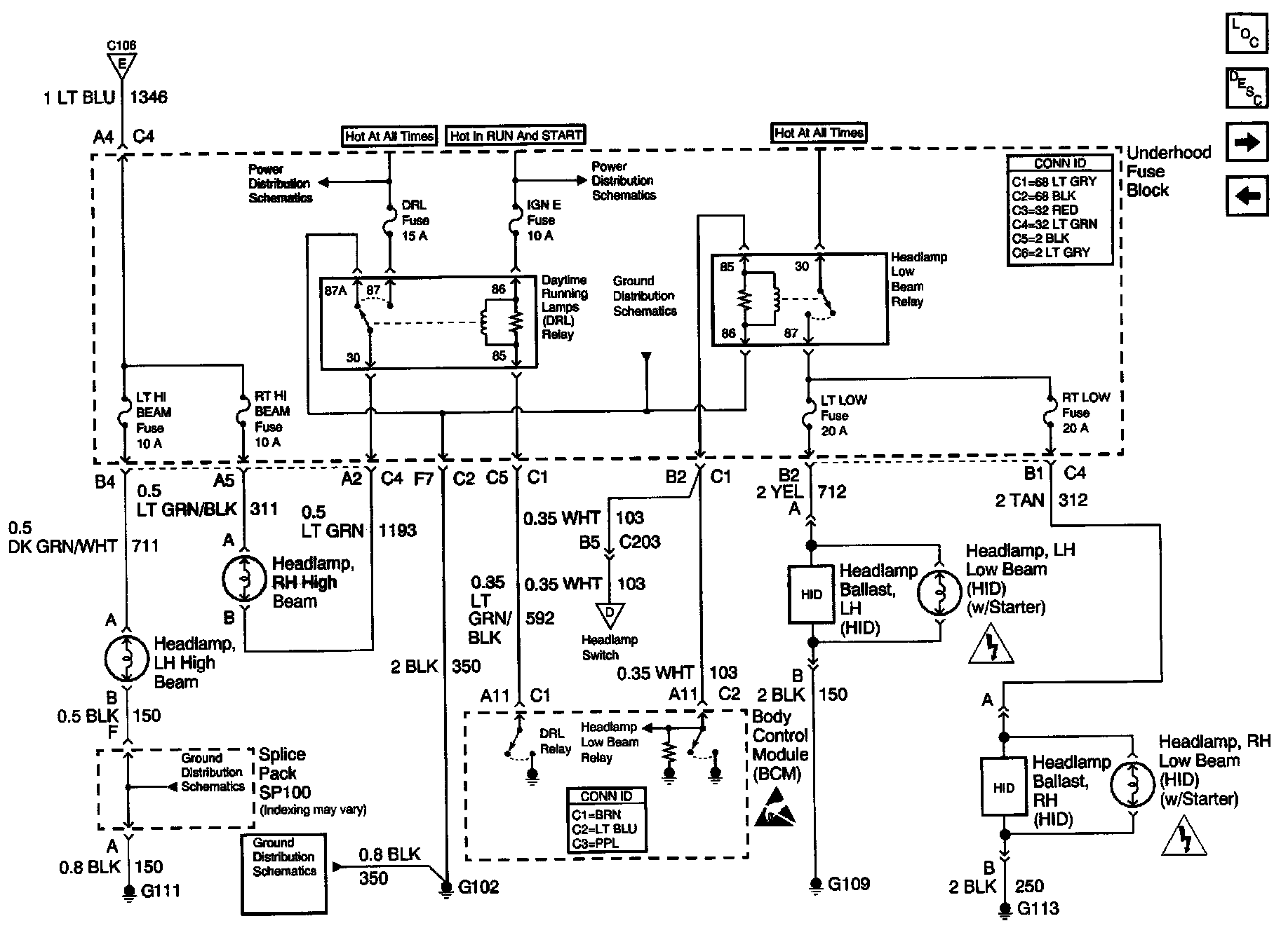 Body Control Module Schematics: Headlamps, Low Beam And DRL Relay (Envoy):
