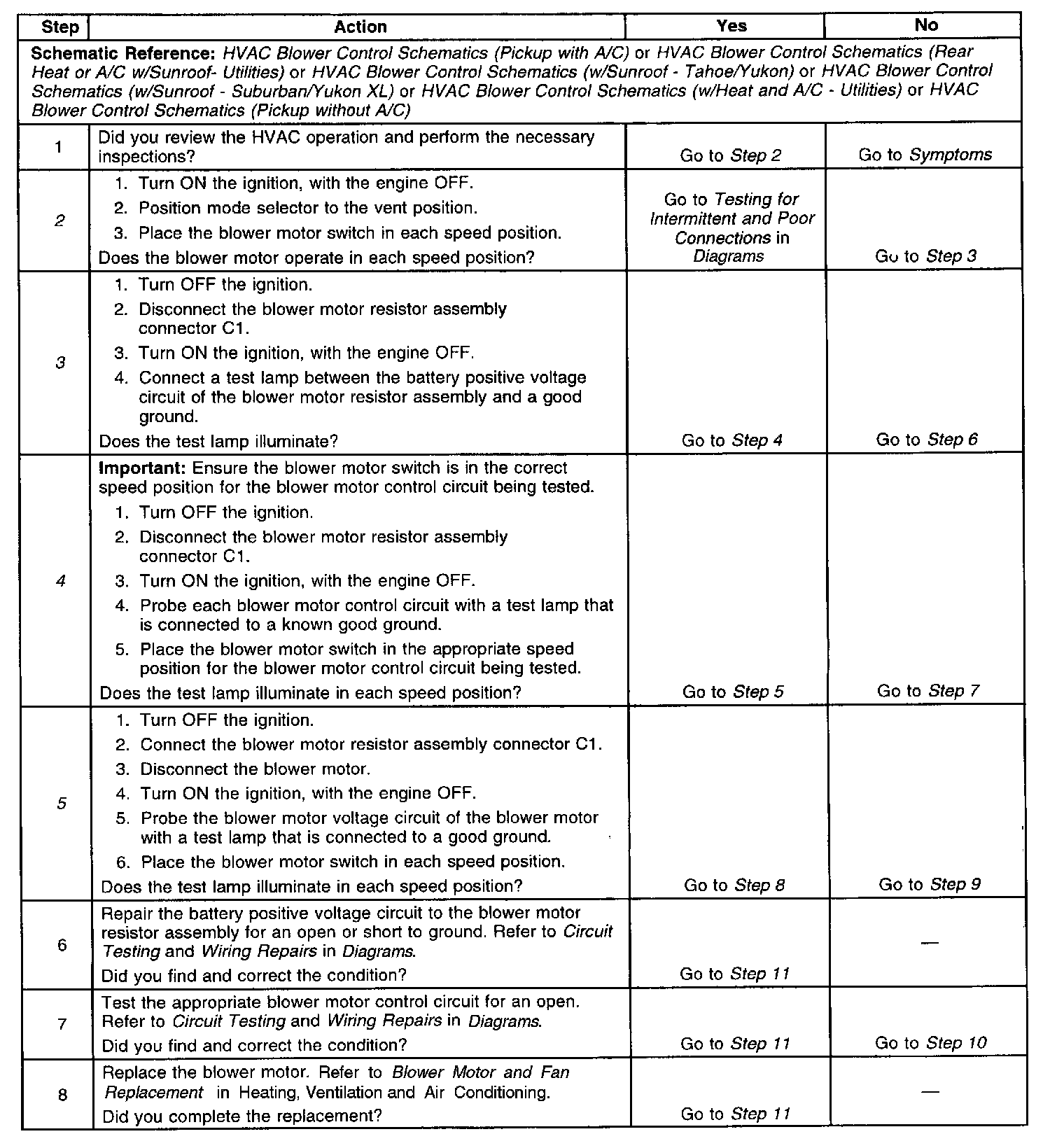 The number(s) below refer to the step number(s) on the diagnostic table.
