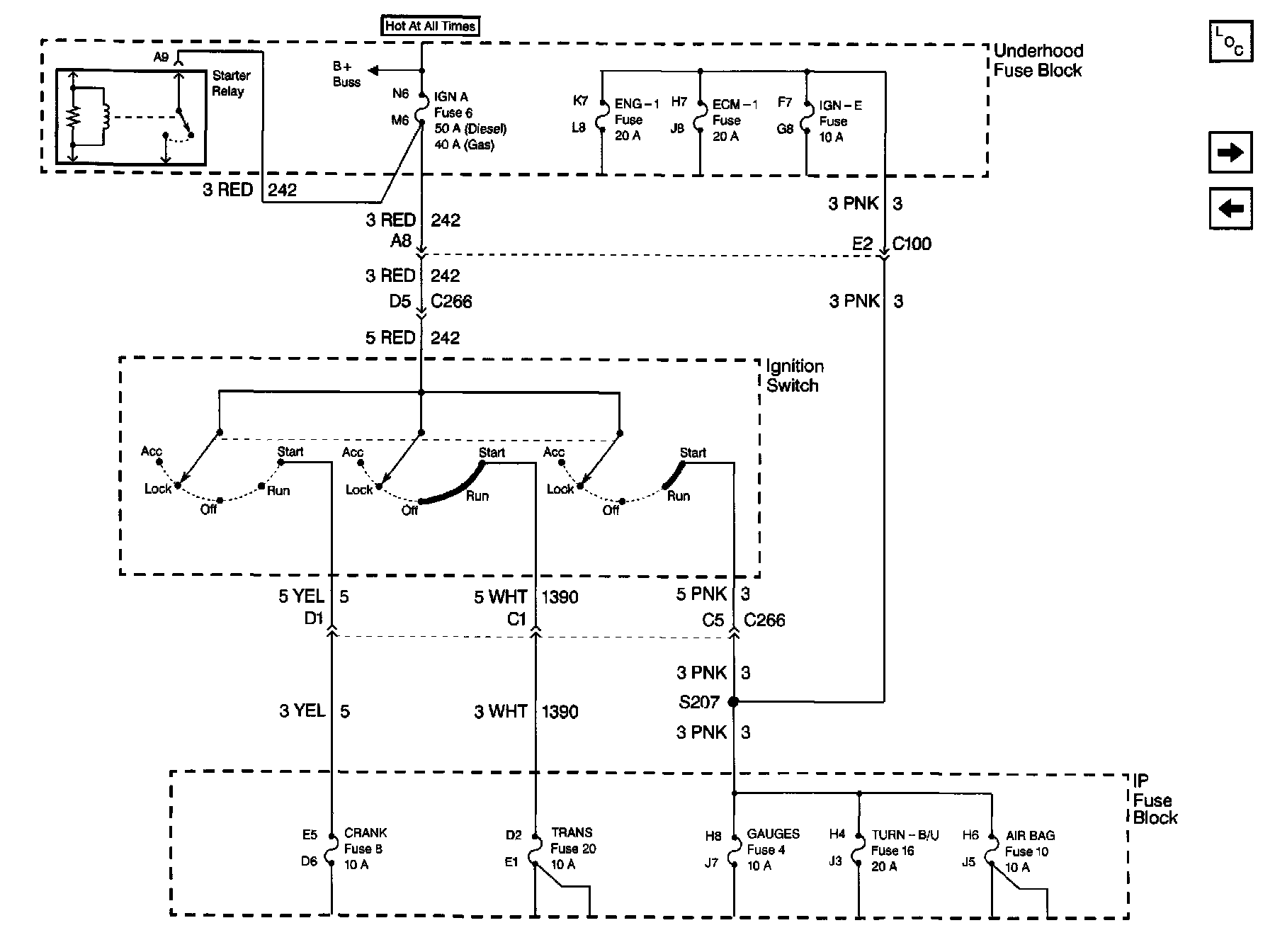 Power Distribution Schematics: IGN A Fuse and Ignition Switch: