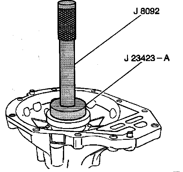 4. Install the side bearing cups into the carrier using the J23423-A and the J 8092.