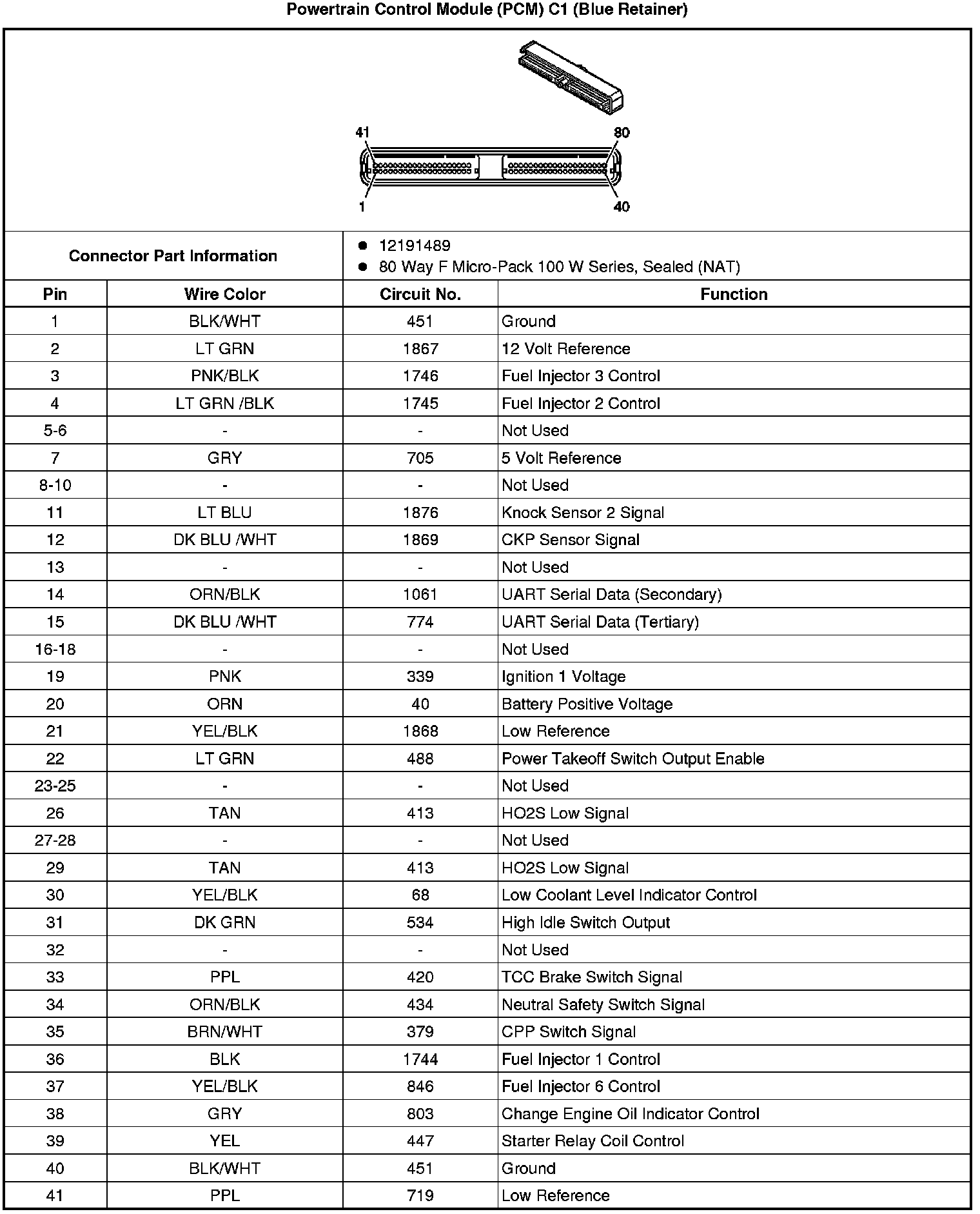 Powertrain Control Module Connector End Views