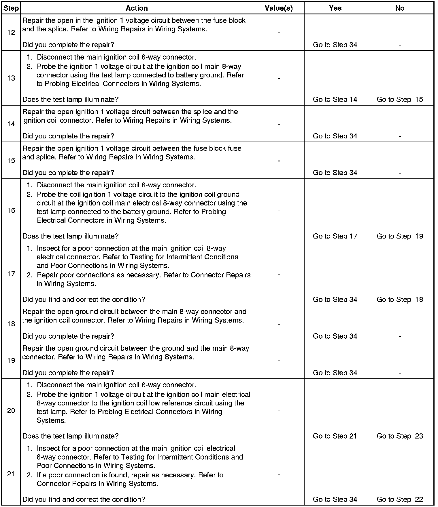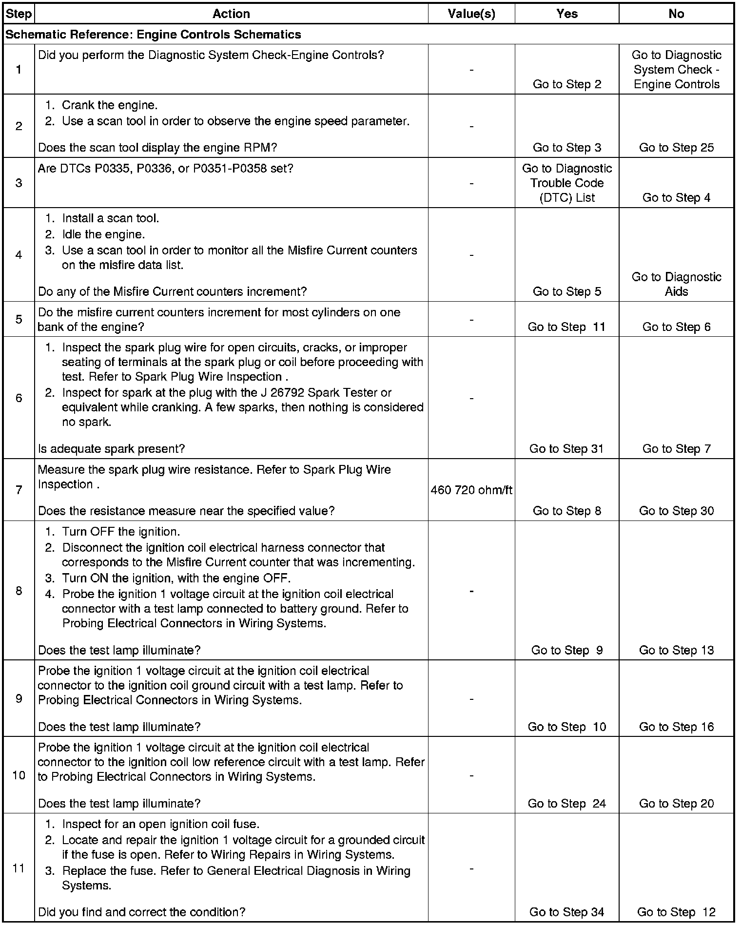 11. A good indication that the fuse is open is all of the misfire current counters are incrementing on one side of the engine. Inspect the ignition positive voltage circuit for a grounded circuit. If the fuse is open and the ignition coil circuits are OK, inspect the injector circuits for being grounded.
