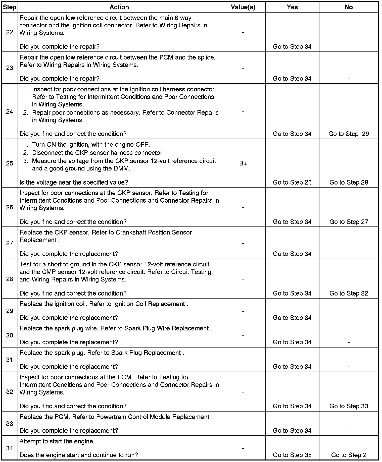 The CKP signal must be available for the engine to start. The CMP signal is not needed to start and operate the engine. The PCM can determine when a cylinder is on either the firing or exhaust stroke by the 24X signal.